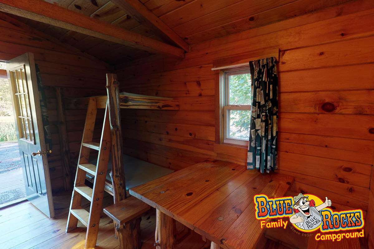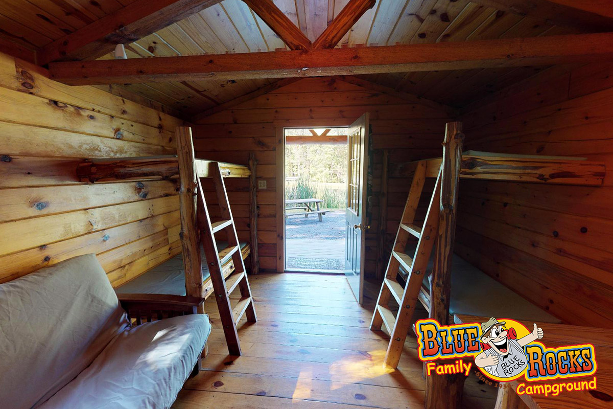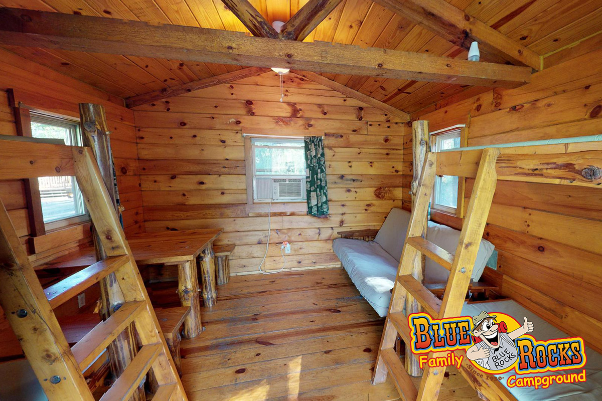 Located next to the fishing ponds, two more one-room cabins present a rustic, home-away-from-home camping experience that is Blue Rocks at its best. Electricity is provided and water is located outside. Portable electric heater is available if necessary. Air conditioning is also available.