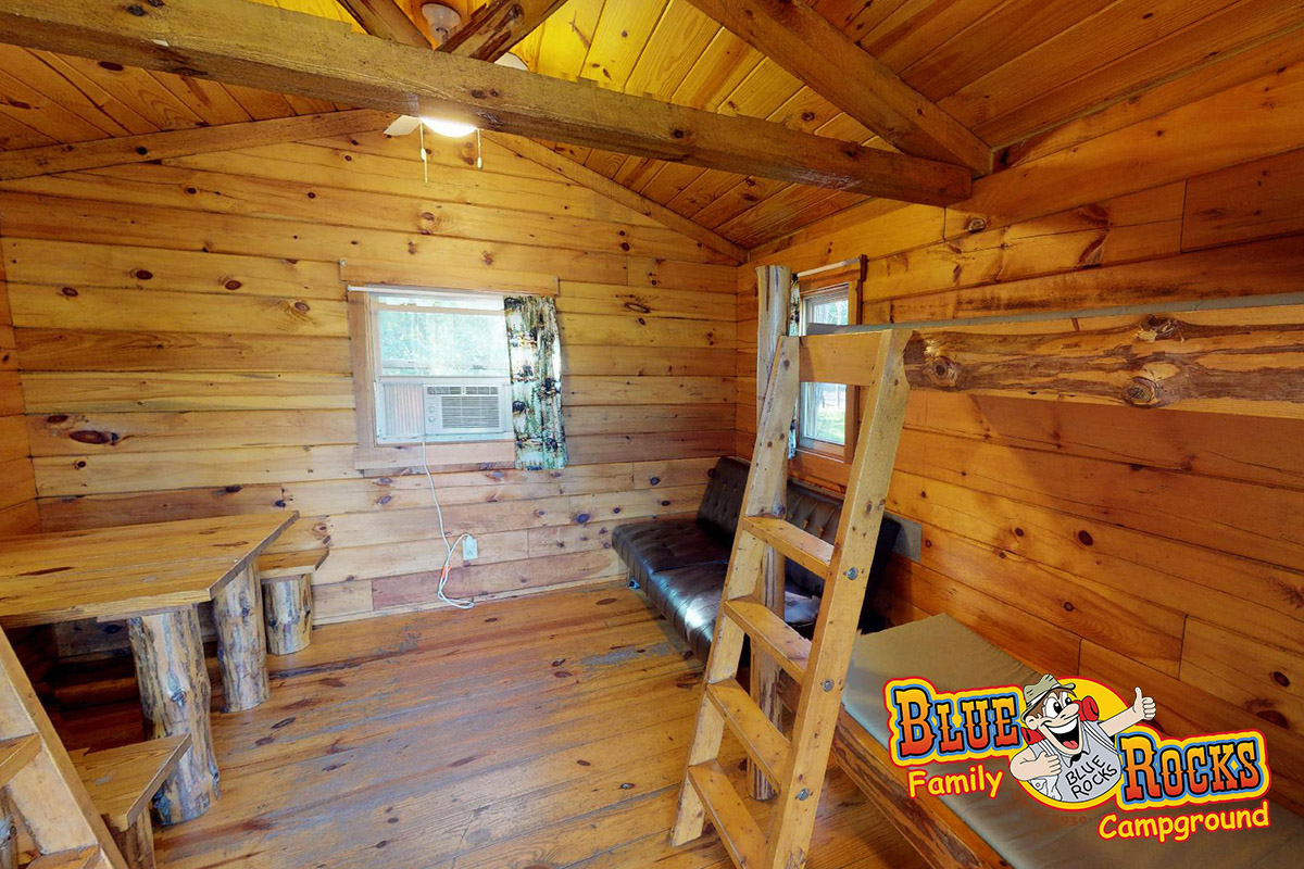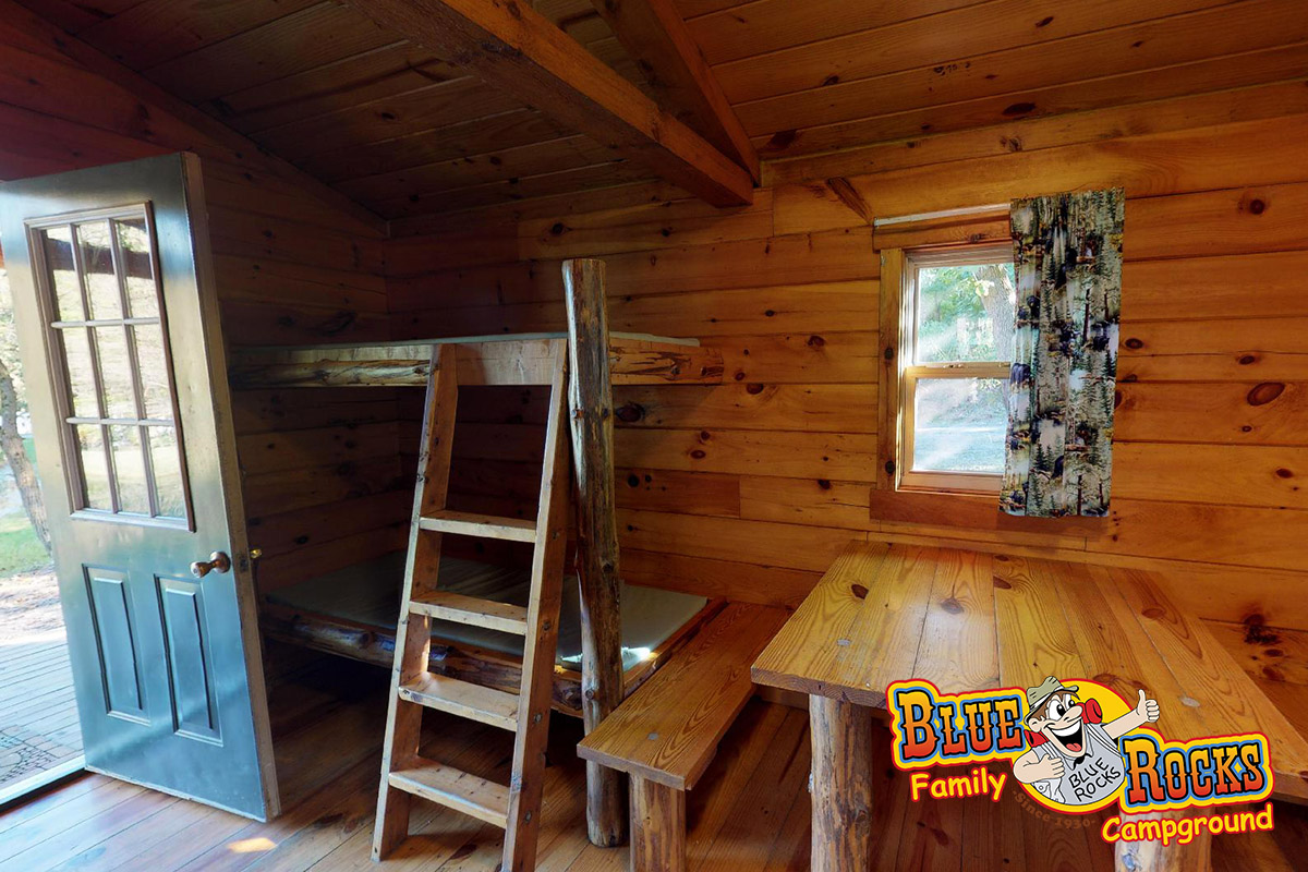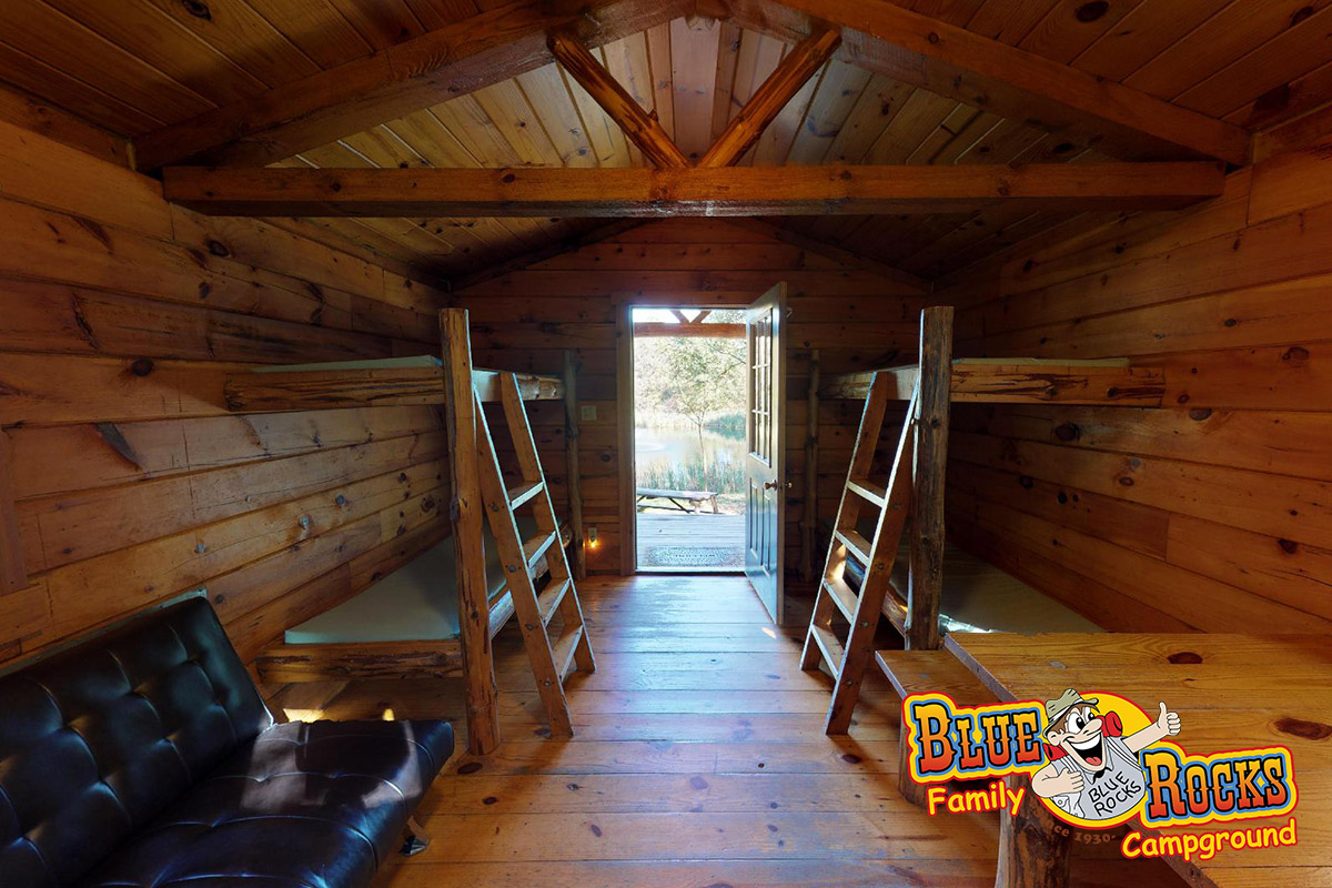 Located next to the fishing ponds, two more one-room cabins present a rustic, home-away-from-home camping experience that is Blue Rocks at its best. Electricity is provided and water is located outside. Portable electric heater is available if necessary. Air conditioning is also available.