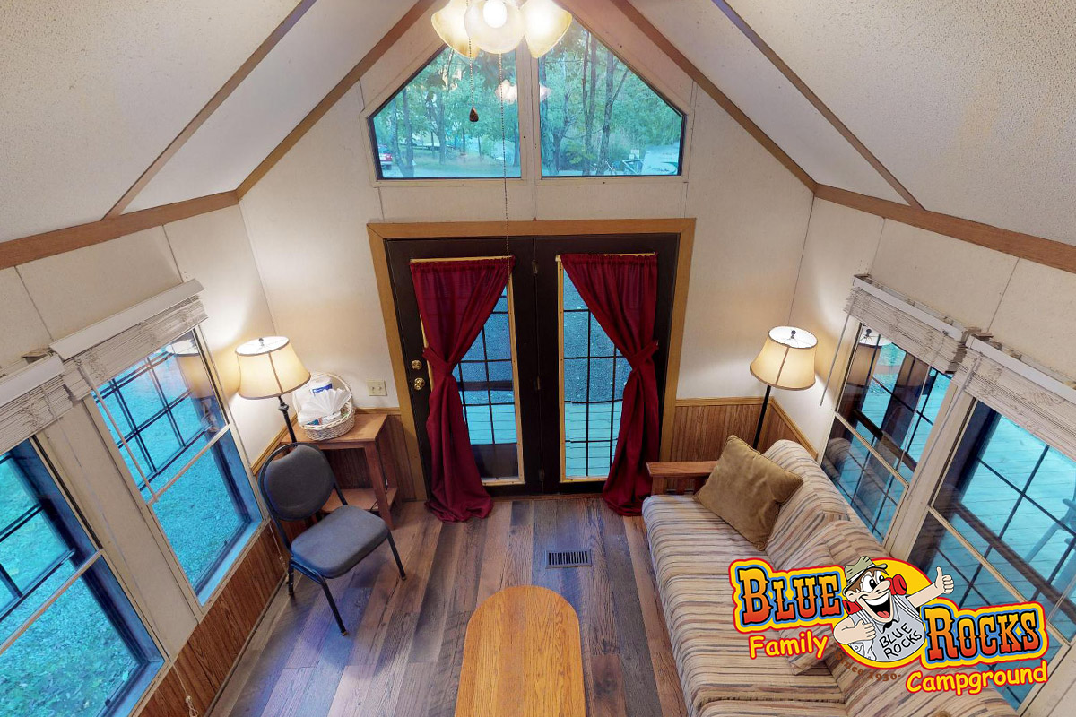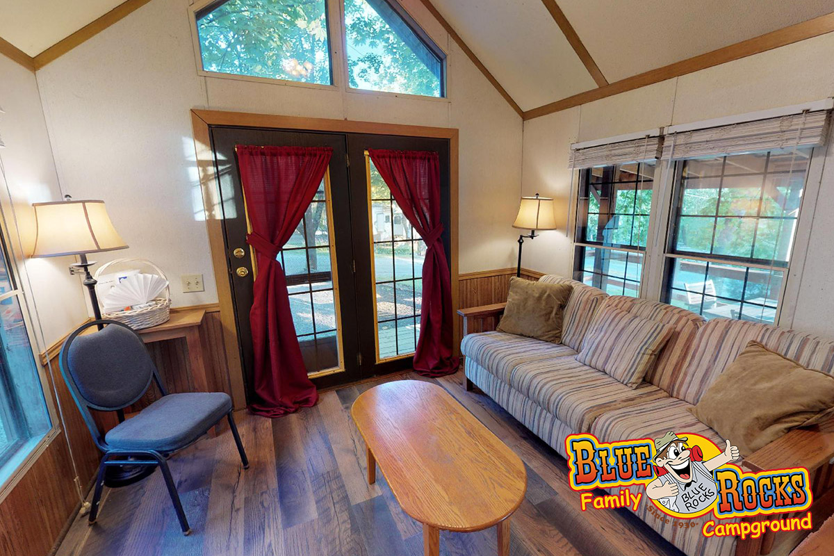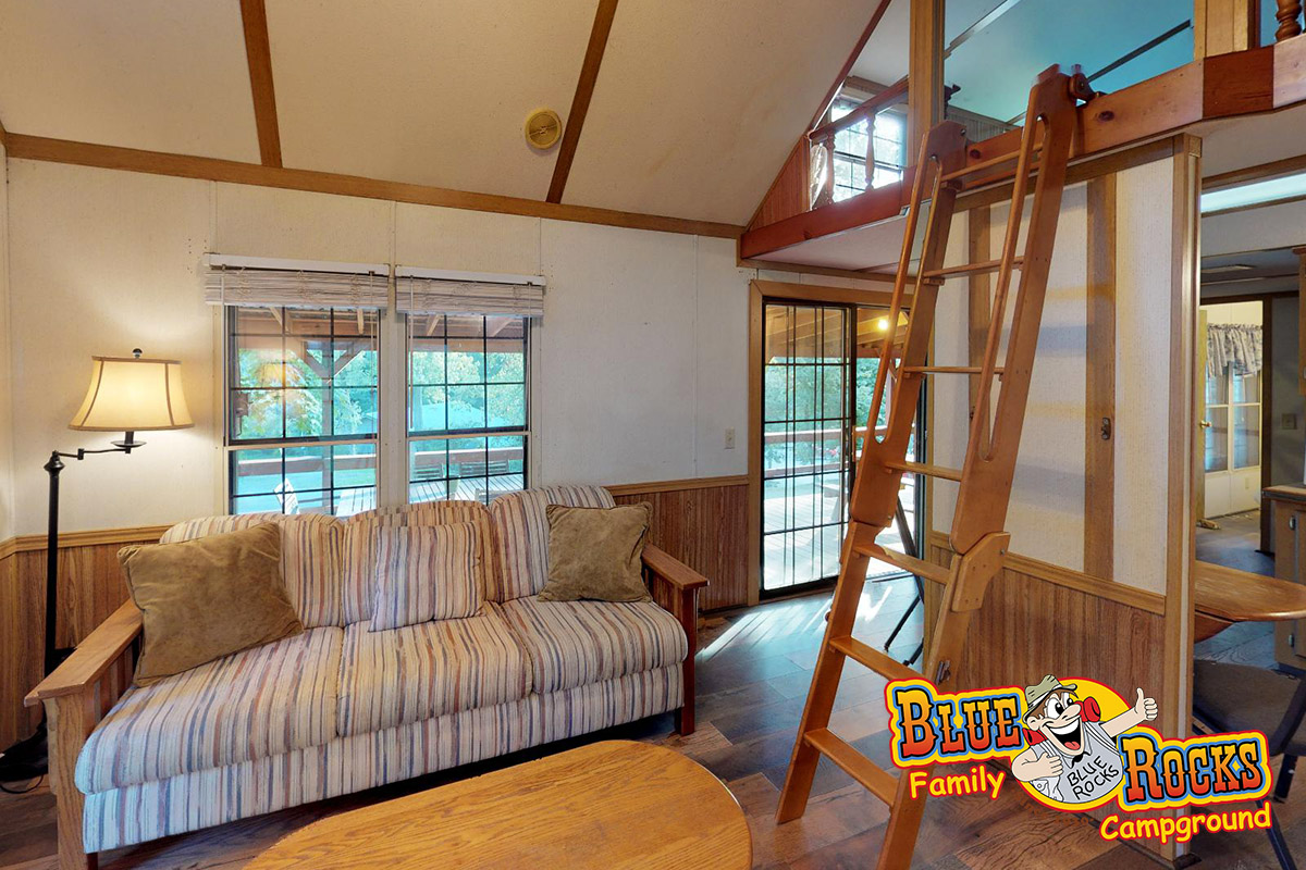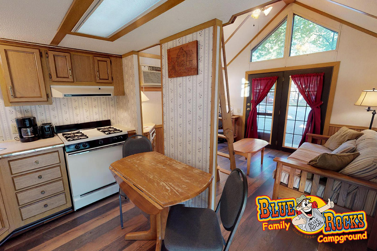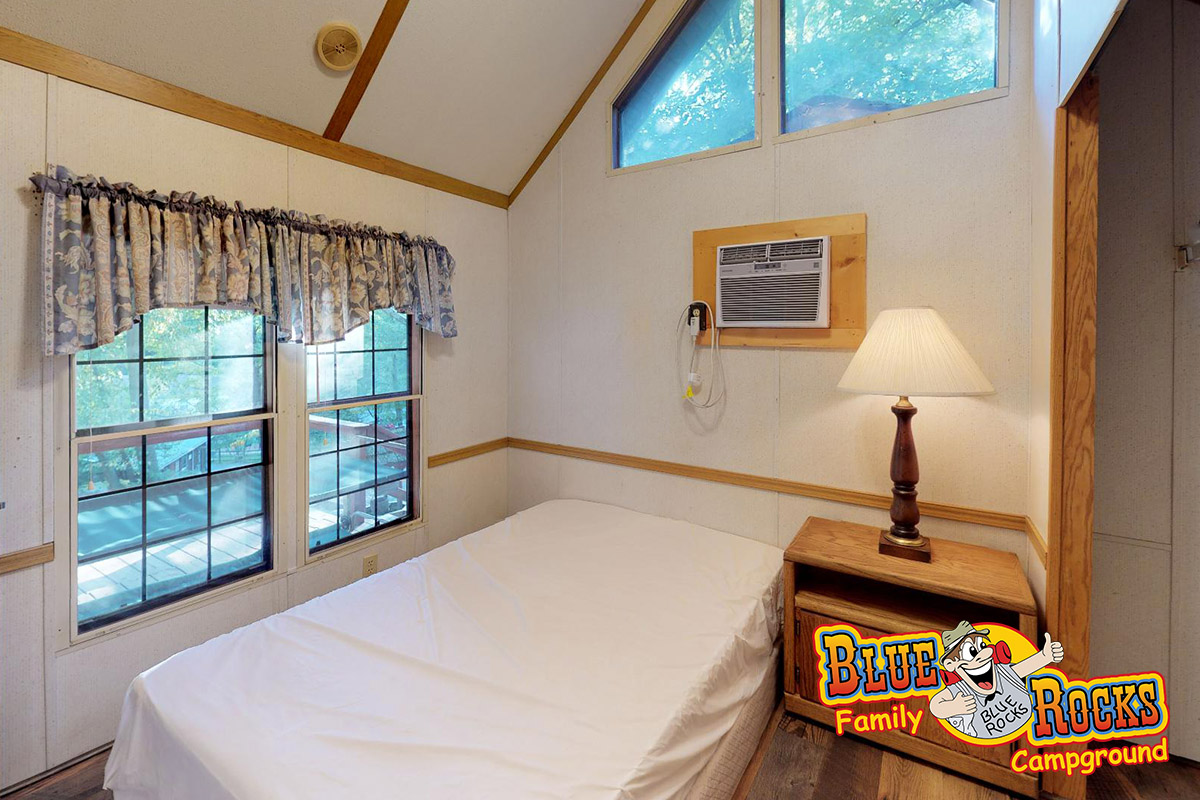 Ideal for week-long camping escapes or long weekends, Cottage #16 is a great place to stay and experience Blue Rocks, family style! Bring your essentials and camp in comfort. Features a full kitchen, bathroom with shower, large porch, fire ring, picnic table, heat and air conditioning, 1 double bed, 2 single mattress in the loft. Tents can be added outside for an additional cost.
